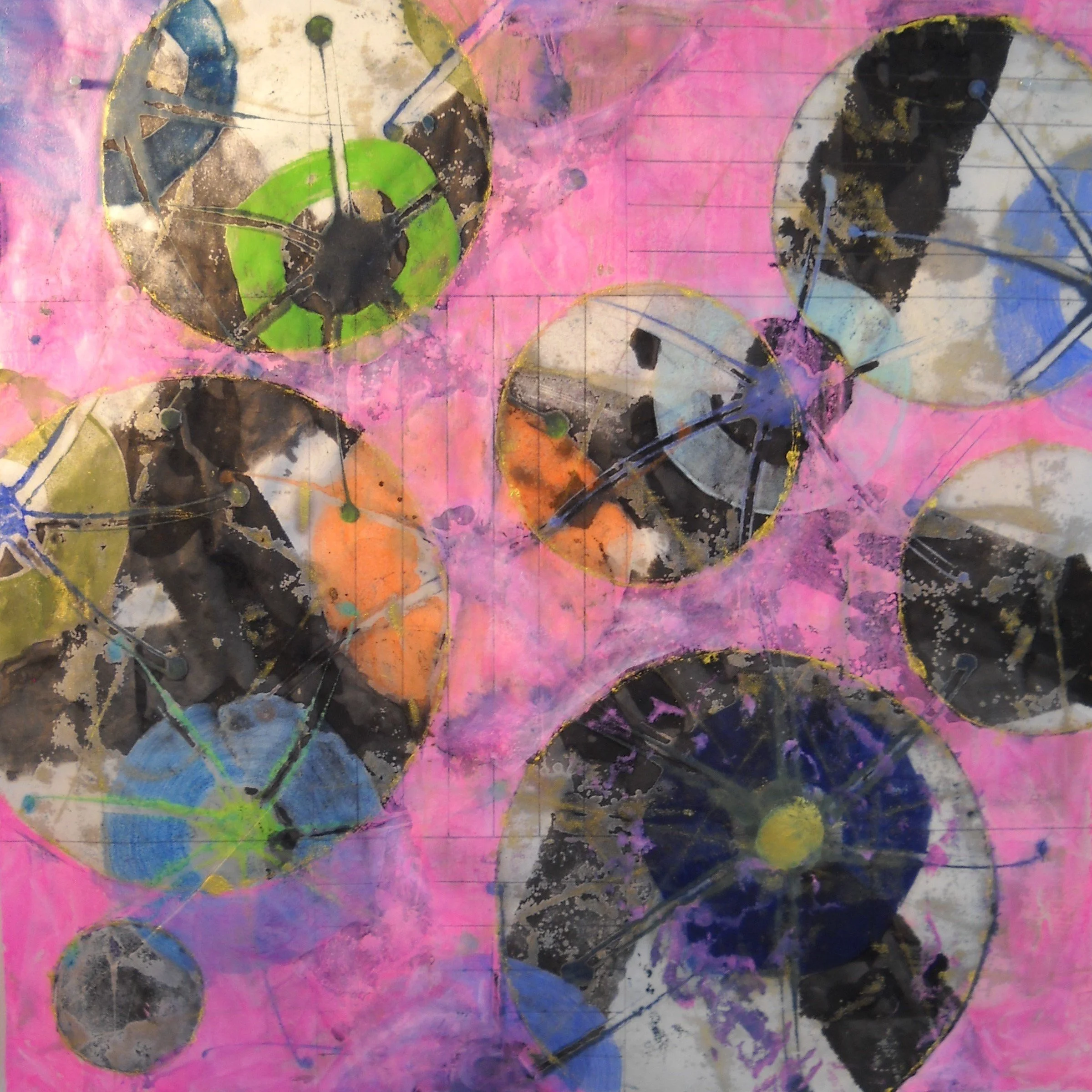 From "Flowerworks" - encaustic monotype with ink and graphite on cradled panel (24" x 24") 2023